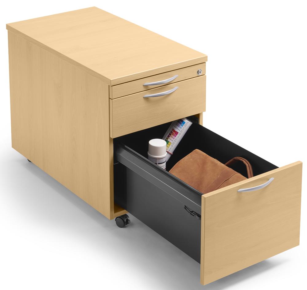 Die Container sind die effektivsten Kollegen im Büro. Ob mobiler Rollcontainer oder als Standcontainer zur Vergrößerung der Schreibtischfläche. Sie bieten jede Menge Platz für Arbeitsutensilien und persönliche Gegenstände. Schaffen Ordnung auf dem Schreibtisch und strukturieren Arbeitsplätze. Zur Auswahl stehen Ihnen 4 verschiedene Roll- und 2 Standcontainer. Alle Varianten verfügen über stabile Metallschübe mit Selbsteinzug und Auszugssperre. Sie lassen sich zentral verschließen und durch umfangreiches Zubehör Ihren individuellen Bedürfnissen anpassen.