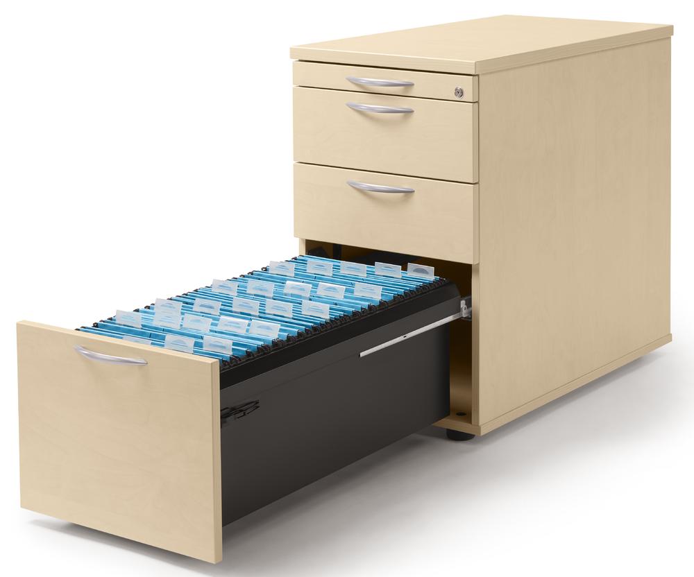 Zur Auswahl stehen Ihnen 4 verschiedene Roll- und 2 Standcontainer. Alle Varianten verfügen über stabile Metallschübe mit Selbsteinzug und Auszugssperre. Sie lassen sich zentral verschließen. Und: Durch umfangreiches Zubehör Ihren individuellen Bedürfnissen anpassen.
