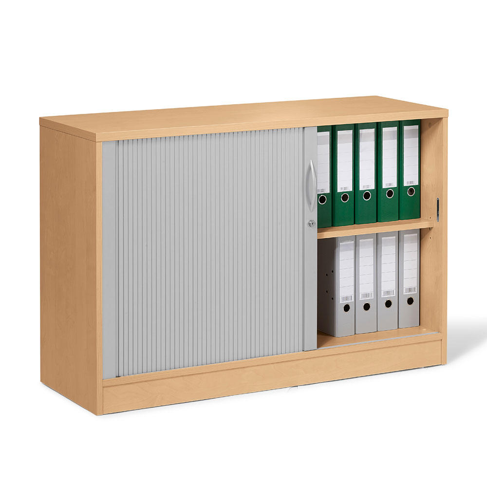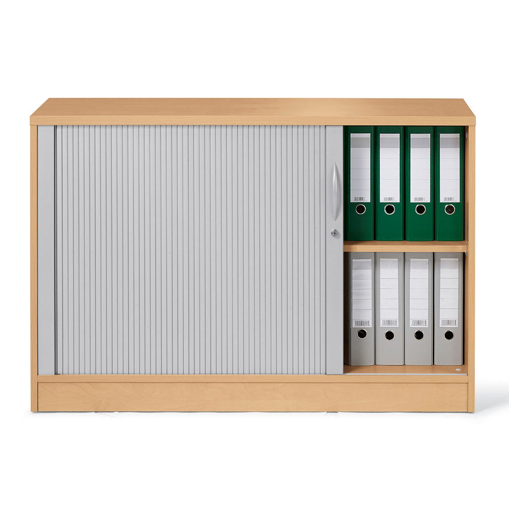 Die Rollladenschränke stellen bei gleichen Vorteilen wie die Schiebetürenschränke eine optische Alternative dar. Beim Öffnen verschwindet die hochwertige Rollladenmatte platzsparend im Inneren des Schrankes. So haben Sie direkten Zugriff auf alle Unterlagen. Eine Funktionsfläche, wie etwa bei Flügeltürenschränken üblich, entfällt. Ihre Büroflächen werden effizienter genutzt. Und: Durch die elegante Lackierung in Alusilber verleihen Sie Ihrem Büro ein hochwertiges Ambiente.