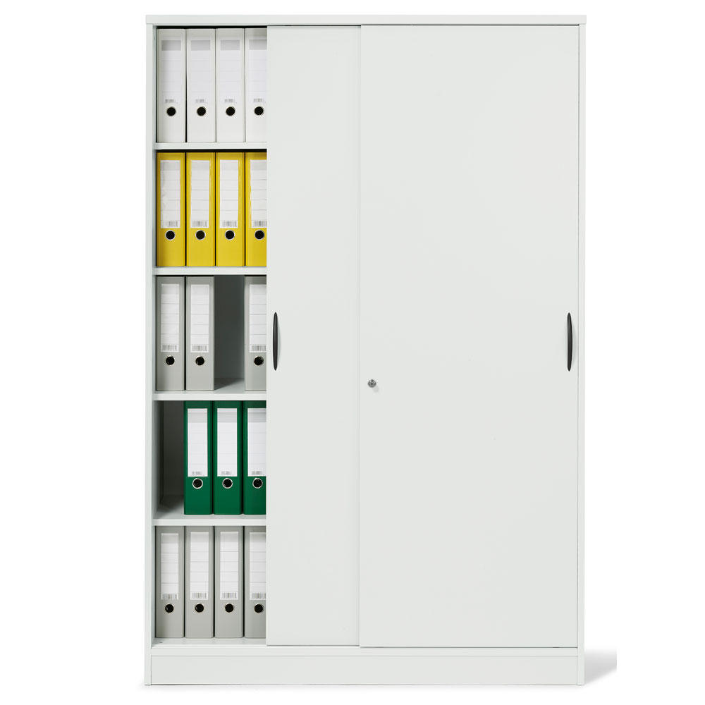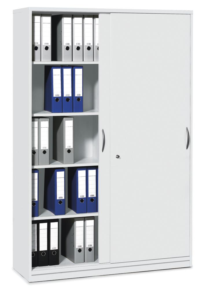Die Schiebetürenschränke verbinden Top-Qualität mit effizienter Raumnutzung. Die leichtlaufenden Türen in Korpusfarbe laufen platzsparend im Inneren des Schrankes. Dadurch finden diese Schränke vielfältige Anwendungsbereiche: in kleinen Büros, hinter Türen, im Durchgangsbereich oder als Raumteiler in Großraumbüros.