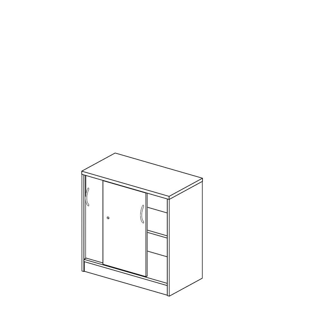 Die Schiebetürenschränke verbinden Top-Qualität mit effizienter Raumnutzung. Die leichtlaufenden Türen in Korpusfarbe laufen platzsparend im Inneren des Schrankes. Dadurch finden diese Schränke vielfältige Anwendungsbereiche: in kleinen Büros, hinter Türen, im Durchgangsbereich oder als Raumteiler in Großraumbüros.