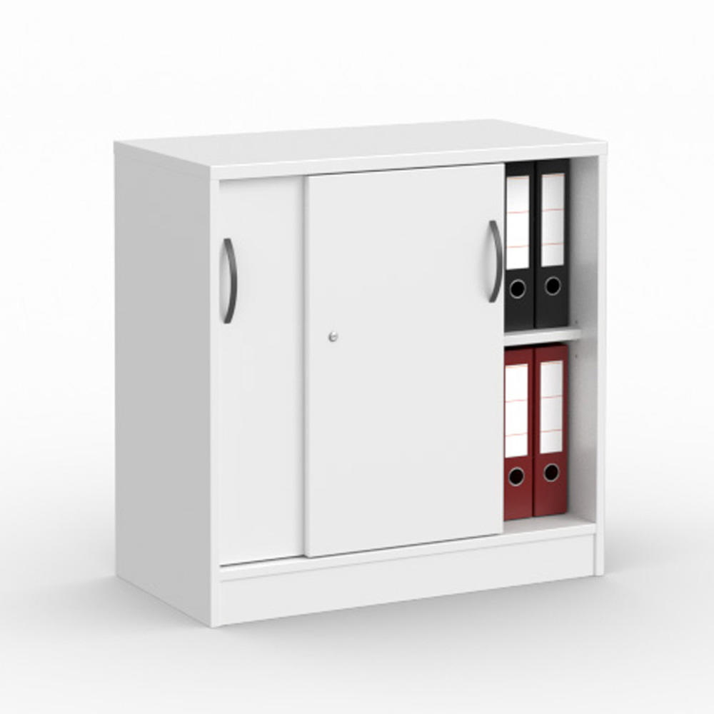Die Schiebetürenschränke verbinden Top-Qualität mit effizienter Raumnutzung. Die leichtlaufenden Türen in Korpusfarbe laufen platzsparend im Inneren des Schrankes. Dadurch finden diese Schränke vielfältige Anwendungsbereiche: in kleinen Büros, hinter Türen, im Durchgangsbereich oder als Raumteiler in Großraumbüros.