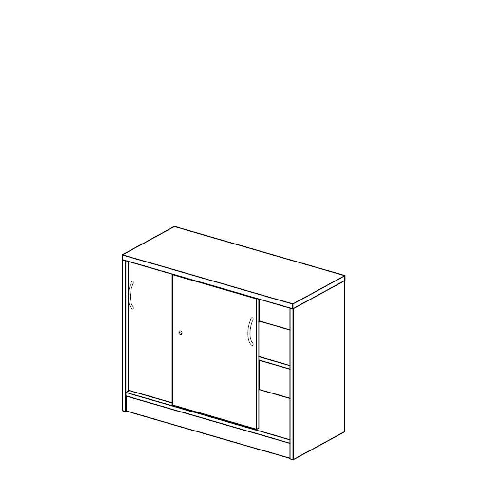 Die Schiebetürenschränke verbinden Top-Qualität mit effizienter Raumnutzung. Die leichtlaufenden Türen in Korpusfarbe laufen platzsparend im Inneren des Schrankes. Dadurch finden diese Schränke vielfältige Anwendungsbereiche: in kleinen Büros, hinter Türen, im Durchgangsbereich oder als Raumteiler in Großraumbüros.