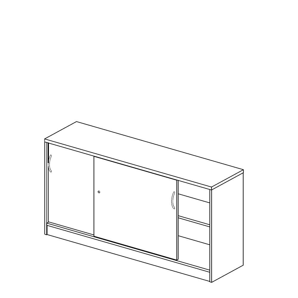 Die Schiebetürenschränke verbinden Top-Qualität mit effizienter Raumnutzung. Die leichtlaufenden Türen in Korpusfarbe laufen platzsparend im Inneren des Schrankes. Dadurch finden diese Schränke vielfältige Anwendungsbereiche: in kleinen Büros, hinter Türen, im Durchgangsbereich oder als Raumteiler in Großraumbüros.